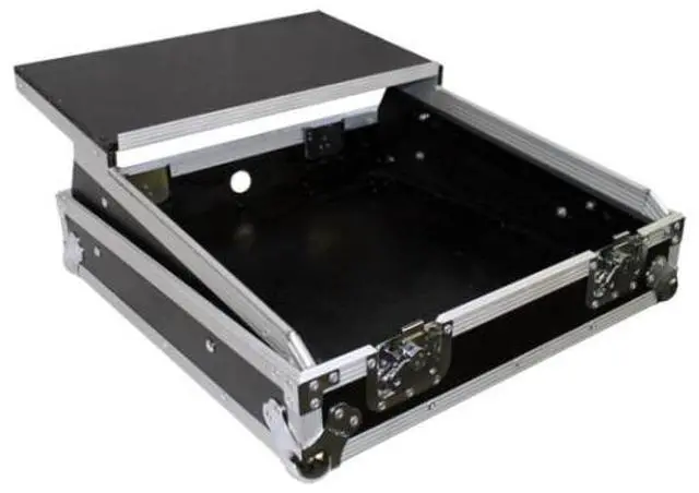ProX 19-Inch Rack Mount Mixer Case with 10U Laptop ShelfThis 10U 19" Slant ATA 300 style rack mount case is perfect for the mobile DJ. If you need protection for your investment, then look no further. The sliding laptop shelf saves table space, and gives the best access to all of your gear. The removable cable access cover allows you to lock the case while keeping your gear connected, and offers a clean look. Premium Series laminated plywood ensures the best protection and peace of mind. Comes with mounting hardware.Features:Spring action recessed handleEasy locking fit and tongueHeavy and powerful steel ball cornersIndustrial strength rubber feet and latches that can be padlockedDual anchor rivetsPremium series laminated plywoodRecessed butterfly twist lock latchesCable access hole with removable emblem coverSliding laptop shelf