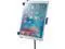 The depth of the tablets can vary between 0.197 and 0.433". For the first use of the tablet holder the support arms settings are made by adjusting the clamp screws to the size and depth of the tablet. For other uses the tablet can be attached and detached quickly and simply through a snap lock. This provides maximum flexibility and mobility. A handy wing nut allows one to adjust the angle, so that each user will easily be able to find their ideal individual position. The tablet can switch between portrait and landscape positions. The tablet is kept in place, there is no danger of the tablet switching position by itself.