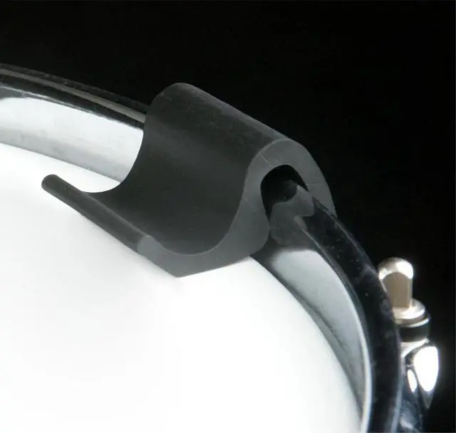 The sleek and unobtrusive DrumClip removes unwanted frequencies, retaining the desired attack, resonance, and feel of your drums. DrumClip rounds out and flattens the drumhead's sound and allows for easier tuning of any size drum. Excessive overtones can be precisely controlled and/or eliminated with the slight pressure that DrumClip applies to the drumhead.