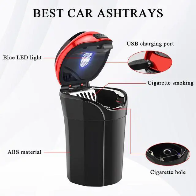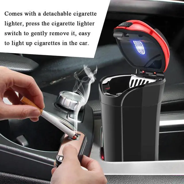 Practical Functions: The ashtray has a large capacity that not only can hold a large amount of ash, but also can be used as a mini automotive trash can for nutshells or waste paper. Equipped with a cigarette lighter, this portable smell-proof ashtray can help you light cigarettes quickly.