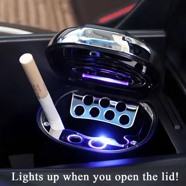 Convenient Design: When you open the lid, the ashtray's cool blue LED light will turn on immediately. So you can see the tray at night and will not shake the ashes anywhere else. Besides, the cigarette lighter of the ashtray is removable, which means you can clean your ashtray with ease.