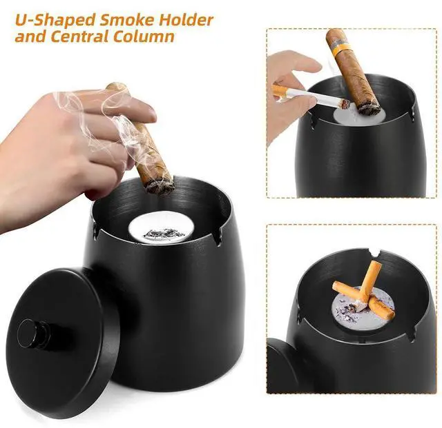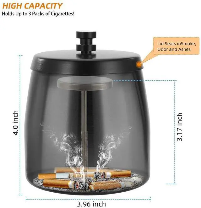 - this ashtray with lid can effectively prevent smoke from escaping and keep non-smokers away from smoke.