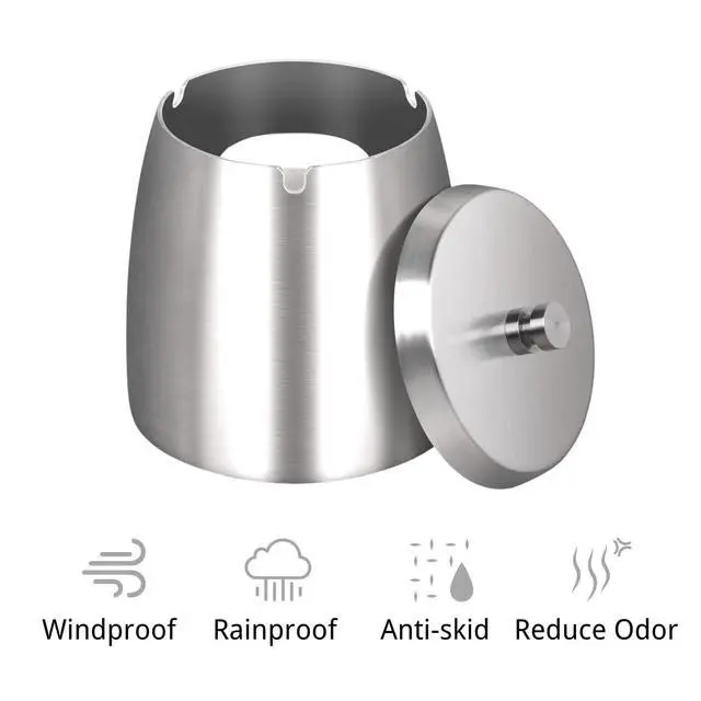 WUSIFIE Ash Tray, Large Outdoor Ashtray with Lid, Ashtray for Outside Patio, Stainless Steel Windproof Smokeless Ash Tray for Balcony, Ashtrays for Smokers, Cigar Ashtray, Home Office Decoration