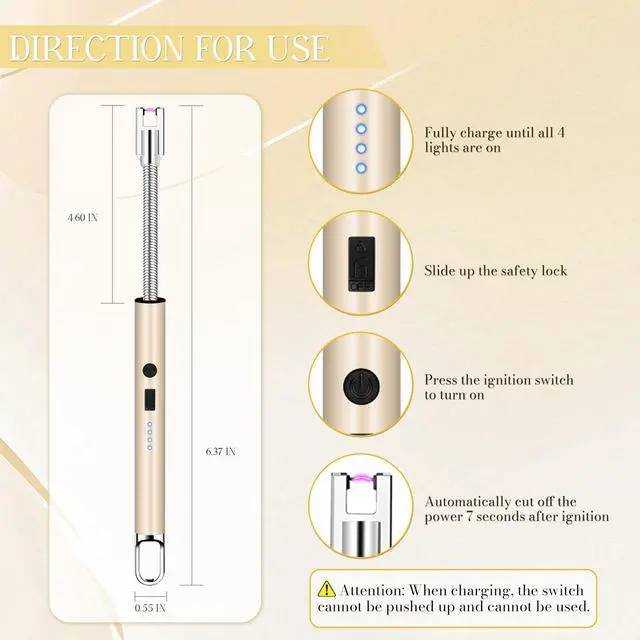 [SAFEGUARDING YOUR SAFETY]- Candle lighter is designed with an automatic power-off function. Electric lighter will automatically cut off the power 7 seconds after ignition, which not only saves energy but also greatly reduces risks. In addition, lighters for candle is equipped with a safety lock, it can only be used normally after the safety lock is opened, effectively preventing child injuries. Such a dual protection design provides a reliable guarantee for your safe use.