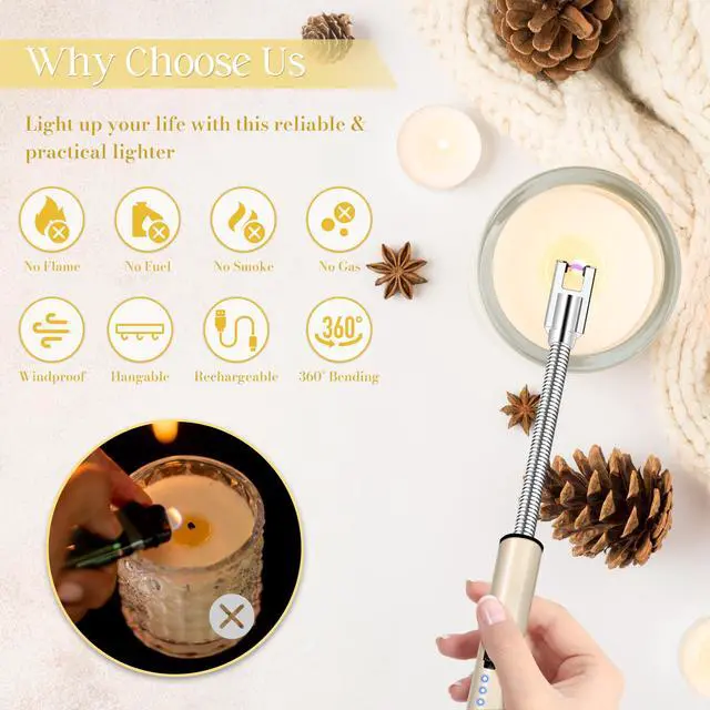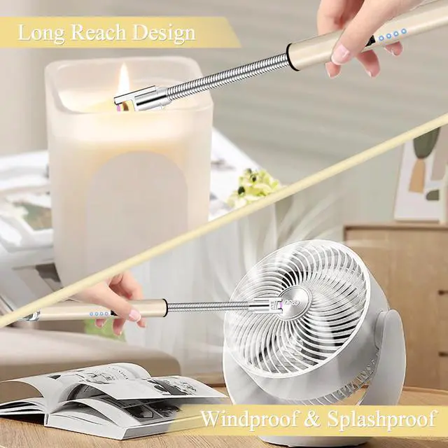 Electric Lighter, Candle Lighter Flameless Windproof with 360° Flexible Neck & LED Power Display, Type C Arc Rechargeable Lighters for BBQ, Camping, Cooking, Gift for Christmas, Thanksgiving, Birthday