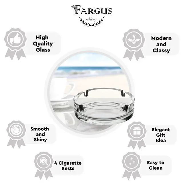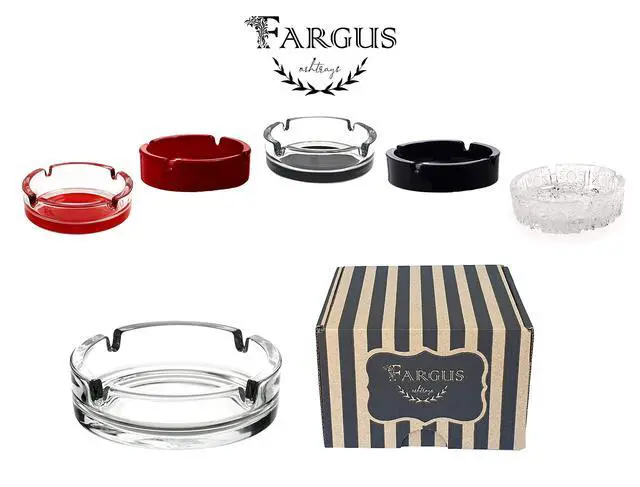 - The Fargus ashtrays are made of high quality, thick, sturdy and heavy glass. They have smooth, solid and shiny surface. When you get it, you will feel the high quality and the elegancy of the glass.