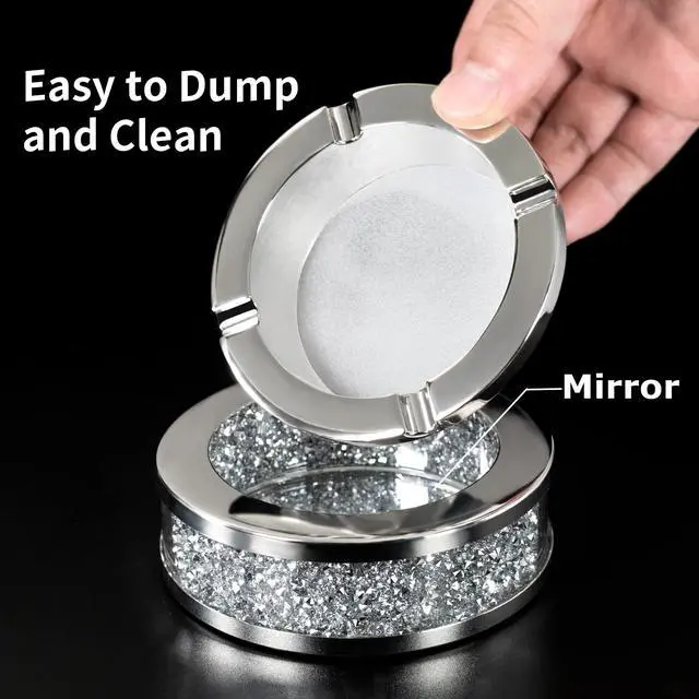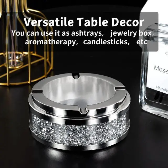 Merchant VideoAre you looking for decorative ashtray? SHYFOY diamond round ashtray is a must-have for you! The modern heavy-duty glass, stainless steel and crushed diamond design provides the perfect blend of functionality and eye-catching style.