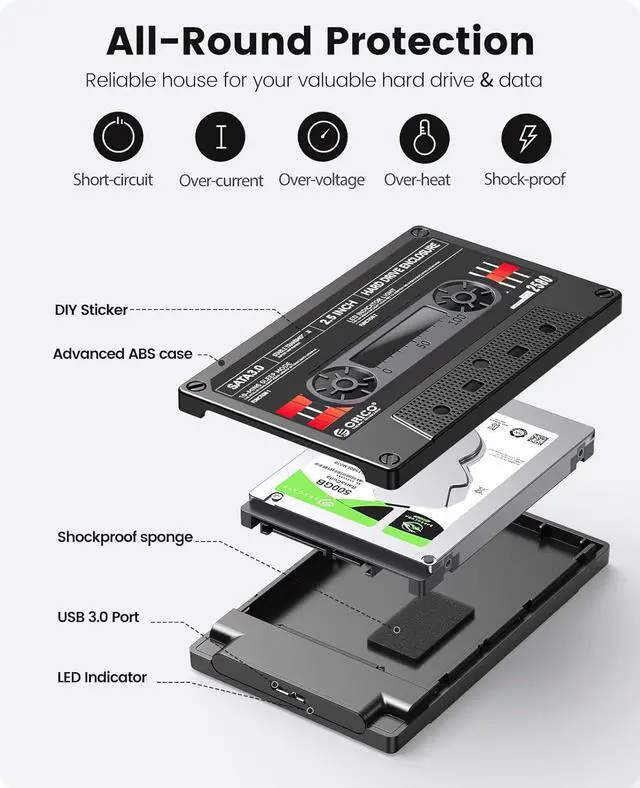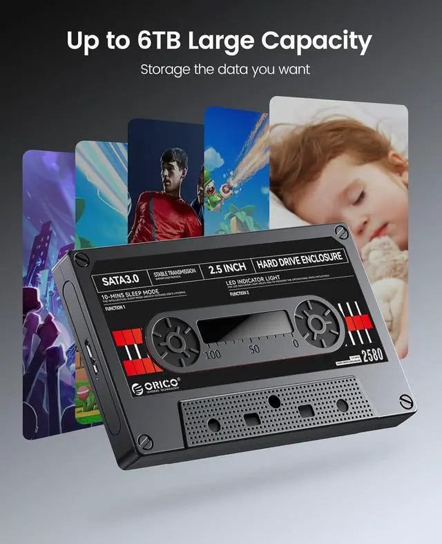 The orico sata enclosure 2.5 usb 3.0 with the vintage tape appearance, insert your hard drive in the enclosure, have the same function of the tape to storage music, even storage movies and photos, special and attractive. Suitable as a gift for friends and family, protable and at a glance to see the inside, convenient to use.