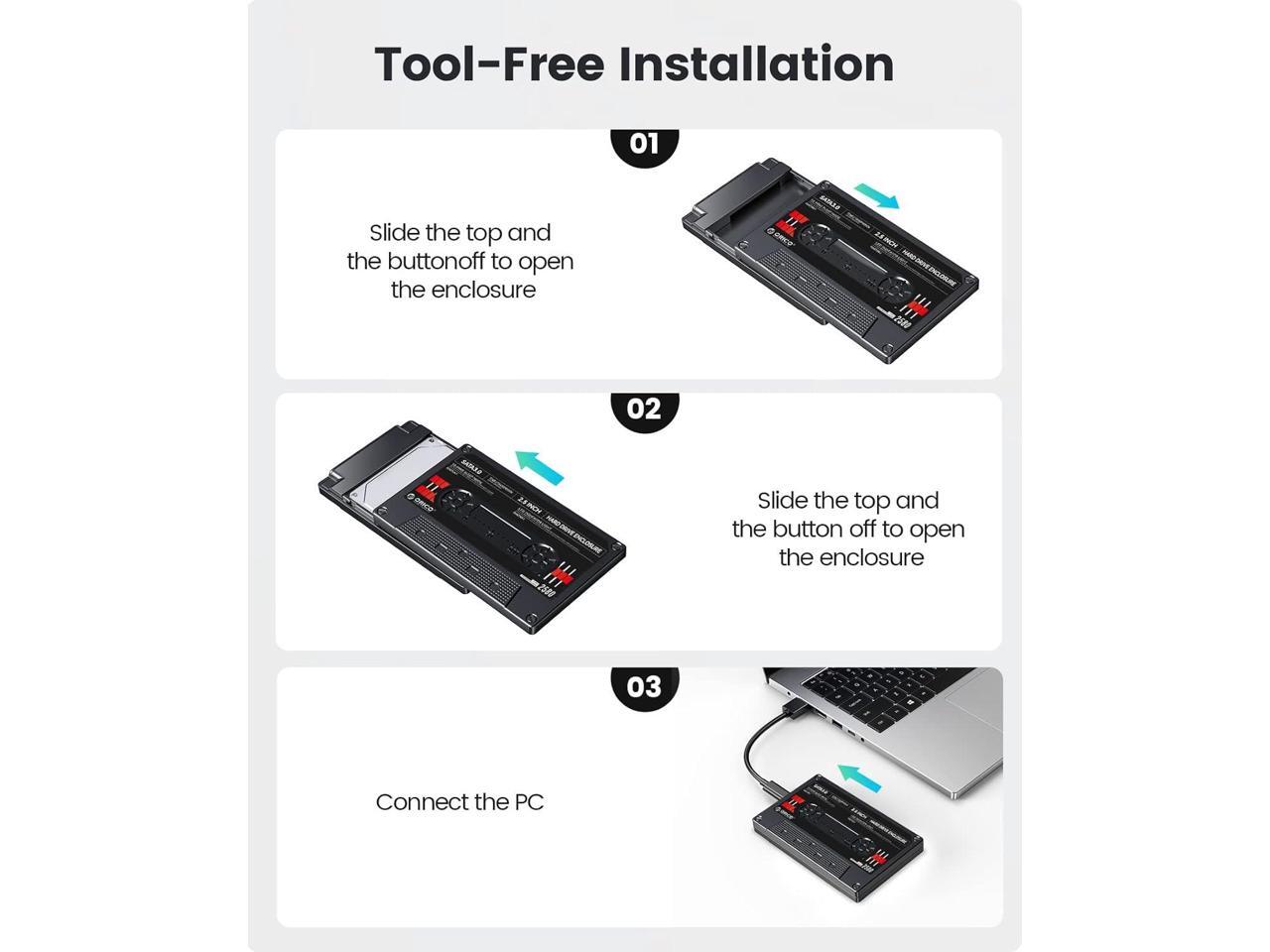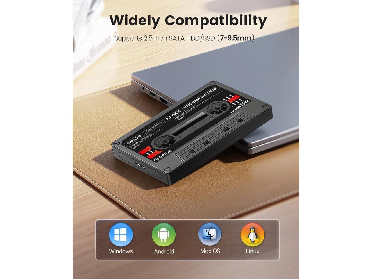 - Portable 2.5'' Hard Drive Enclosure: ORICO external hard drive enclosure can easily hook up your old 2.5inch SATA I/II/III hard drive to transfer files from one PC to another PC, laptop, PS4 or connect as a USB port. A 50cm USB-A cable is included for flexible connection and portability.