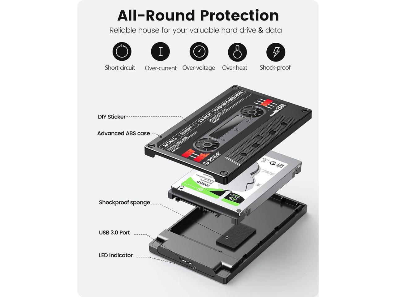 ORICO 2.5'' Hard Drive Enclosure SATA to USB3.0 DIY Sticker External HDD Enclosure for 7/9.5mm HDD SSD, Portable Hard Drive Case with UASP Max 6TB Compatible with Xbox, PS4, Samsung, WD, Seagate