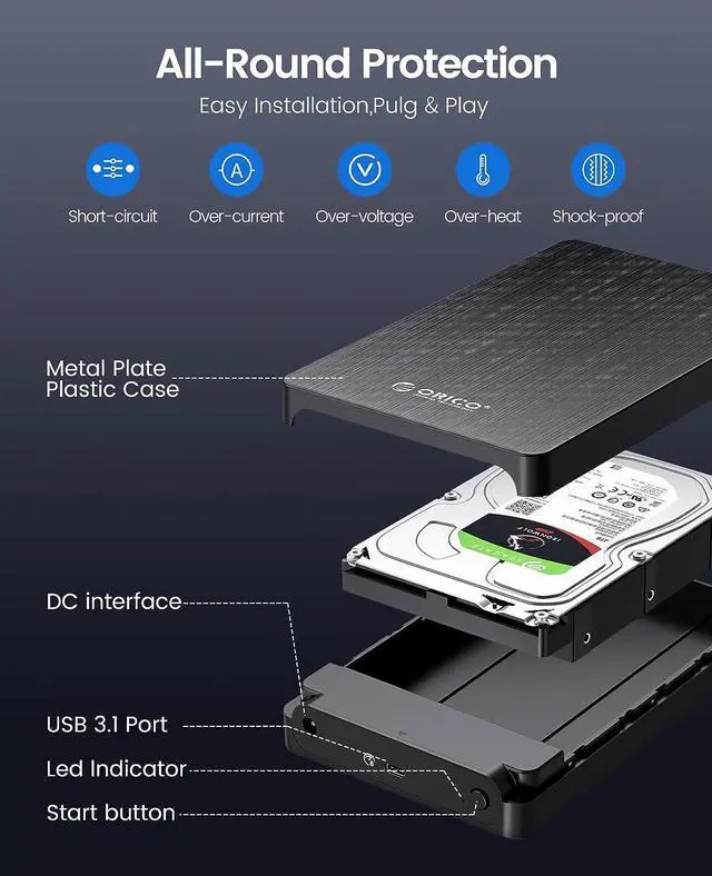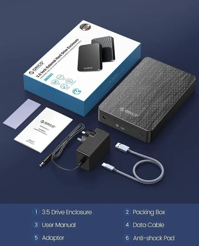 3.5 Hard Drive Enclosure USB 3.1suitable for ordinary business office people. It can be used to connect PCs, laptops, smart TVs, smart routers, PS4 and other devices. Supports the UASP acceleration protocol. External USB3.1 GEN1 Type-C output interface, supports up to 6Gbps transfer rate. Compatible with 3.5-inch SATA HDD mechanical hard drives of different thicknesses Tool-free quick installation design, easy to use.