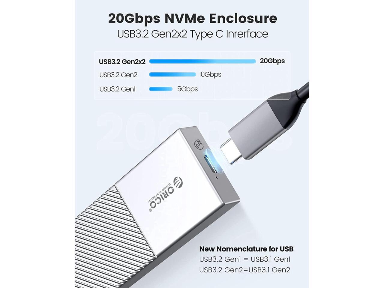 - 20Gbps Omnispeed:USB3.2 Gen2x2 Type C Interface M.2 NVMe enclosure: Up to 20Gbps Extreme-speed M.2 NVME via USB 3.2 Gen 2x2, the theoretical read and write speed can reach 2000MB/s.