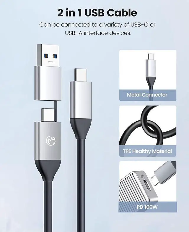 • Upgraded 2 in 1 Cable--The USB cable included with the M.2 USB adapter has 2 output ports, USB C to A (10Gbps) and USB C to C (10Gbps).