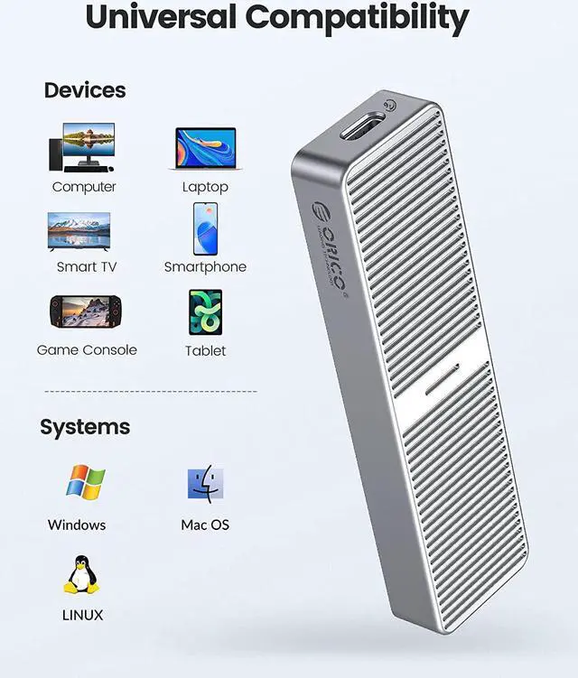 • Wide Compatibility--ORICO M.2 enclosure compatible with both M.2 NGFF SATA B Key, SATA B&M-Key in sizes 2280. NOT Compatible with M.2 NVMe SSDs.