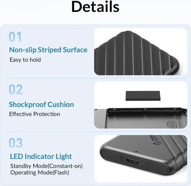 Vibrant transparent casing with ABS material, help distinguish which hard drive is inside easily, designed to be a beautiful addition to your desk Support UASP Protocal