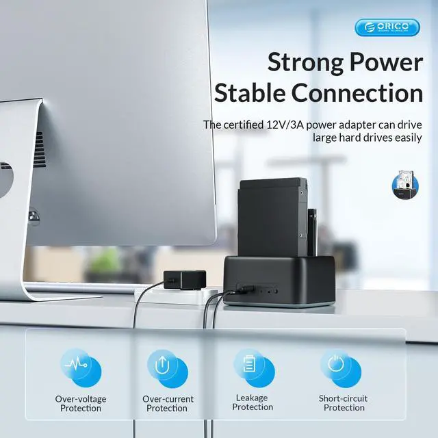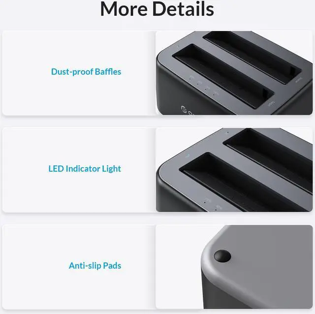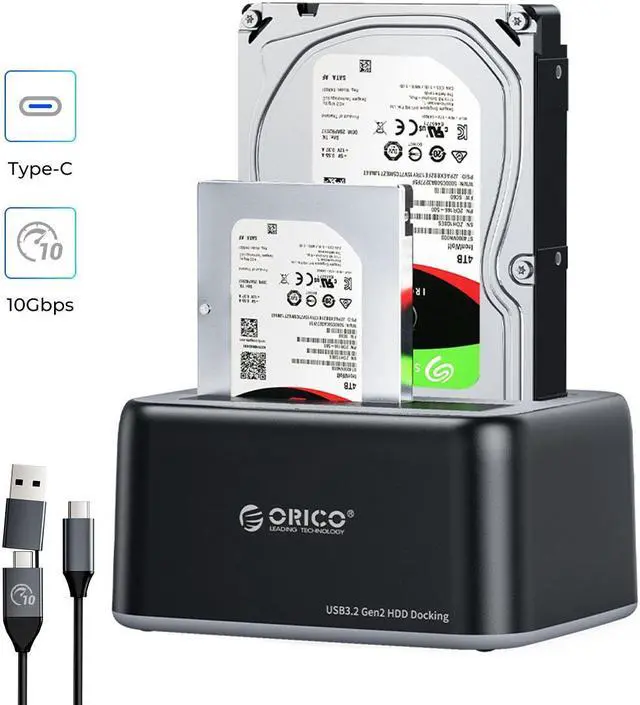 Dual Bay HDD Docking Station Support 2.5 '' & 3.5 '' HDD/SSD Support SATA 3.0 and UASP Type C External Interface Support Up to 18TB*2 Tool Free, 12V3A AC Adapter