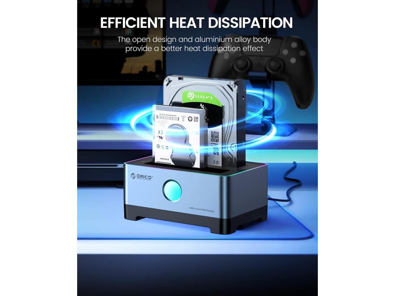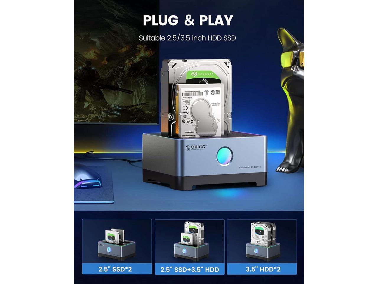 ORICO RGB Hard Drive Docking Station USB 3.2 Gen 1 Aluminum External Hard Drive Dock for 2.5''/3.5'' HDD SSD Up to 36TB Include 10Gbps Data Transfer USB-C&USB-A 2IN1 Cable -5528C3