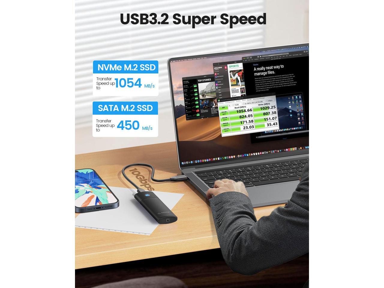 - Portable and Durable : The ultra-slim aluminum case makes the enclosure portable, durable, and ideal for traveling. When using NVMe SSD, the transmission rate is 10Gbps and the read and write speed is 1000MB/s. When using M.2 SATA SSD, the transmission rate is 5Gbps, and the reading and writing speed is 450MB/s.