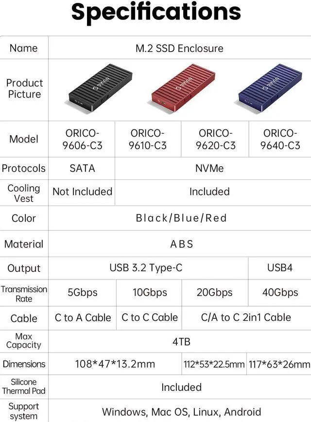 M. 2 NVME SSD Enclosure with 10Gbps Transmission