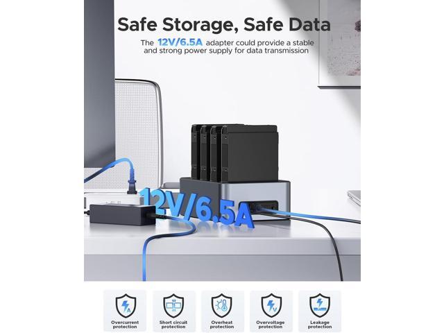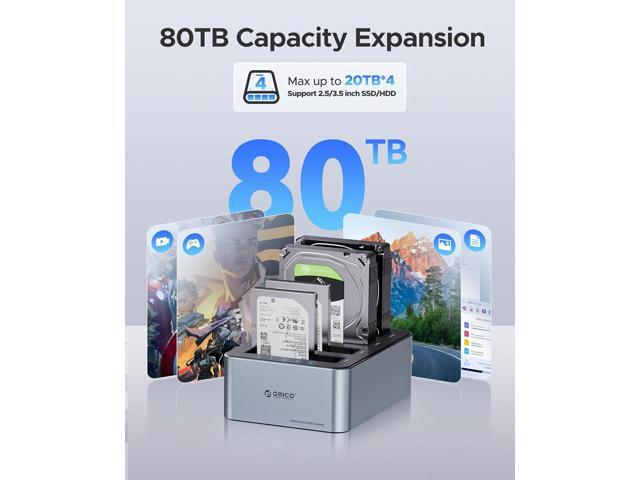 - 80TB Capacity Expansion]This hard drive dock is suitable for a 2.5,3.5 inch SATA SSD HDD with a max of 4x20TB capacity, making it an ideal choice for professional users or photographers who require ample storage space to manage large volumes of high-resolution images and videos.