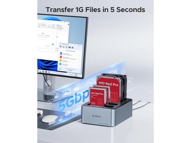 - USB3.2 Gen 1 InterfaceThis hard drive docking station adopts a USB 3.2 Type-C to C interface which supports transfer speeds up to 5Gbps and also supports S.M.A.R.T and TRIM functionalities.