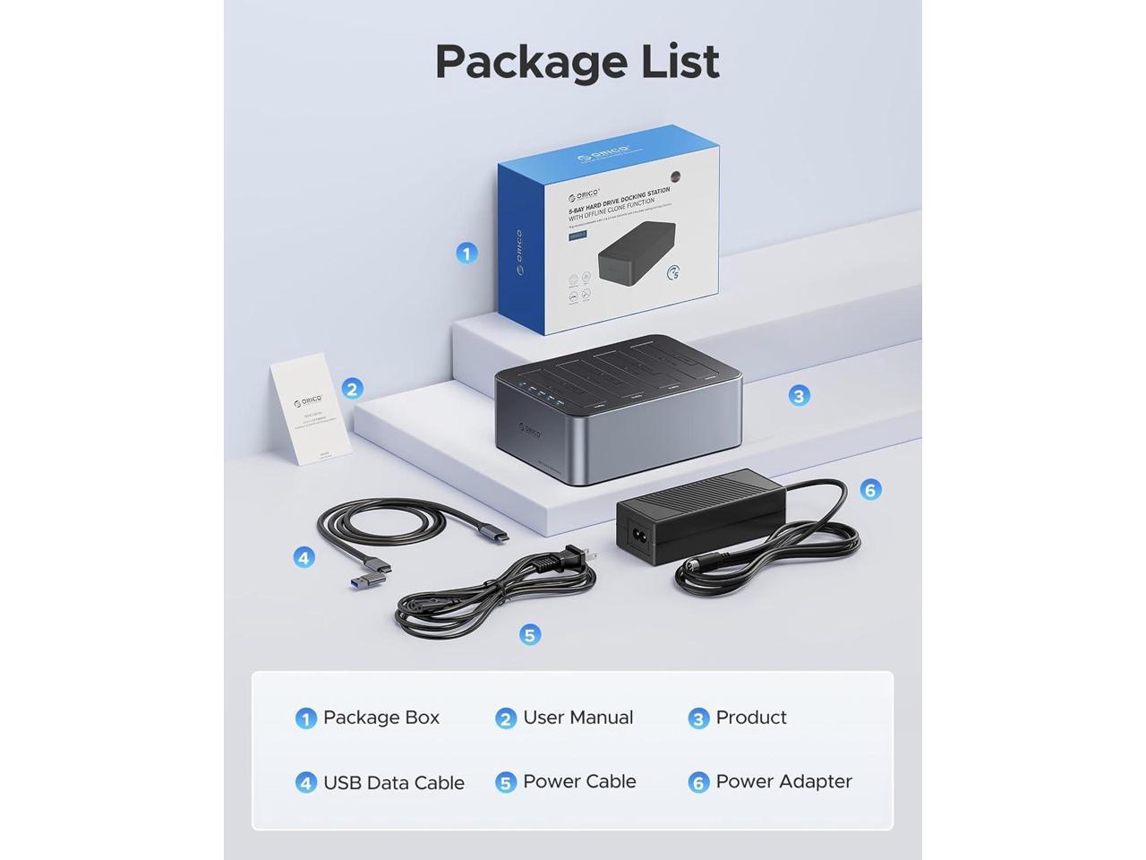 ORICO USB-C Hard Drive Docking Station with Offline Clone 4 Bay Aluminum USB 3.2 Gen 1 for 2.5''/3.5'' SSD HDD Up to 20TB(4*20) -6646C3