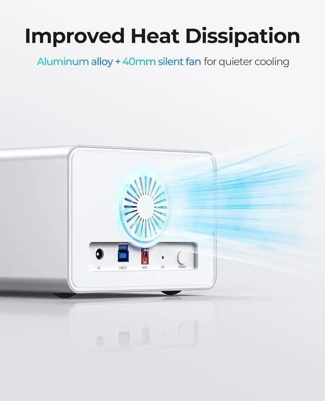 Advanced Heat-Dissipation:Equipped with a 40mm cooling fan and an aluminum alloy body, this enclosure ensures efficient heat dissipation and long-lasting durability. Whether you're running intensive tasks or working in high-temperature environments, your drives stay cool and protected.