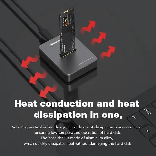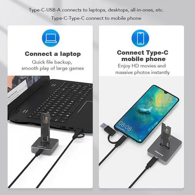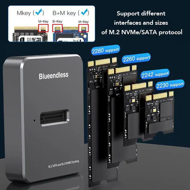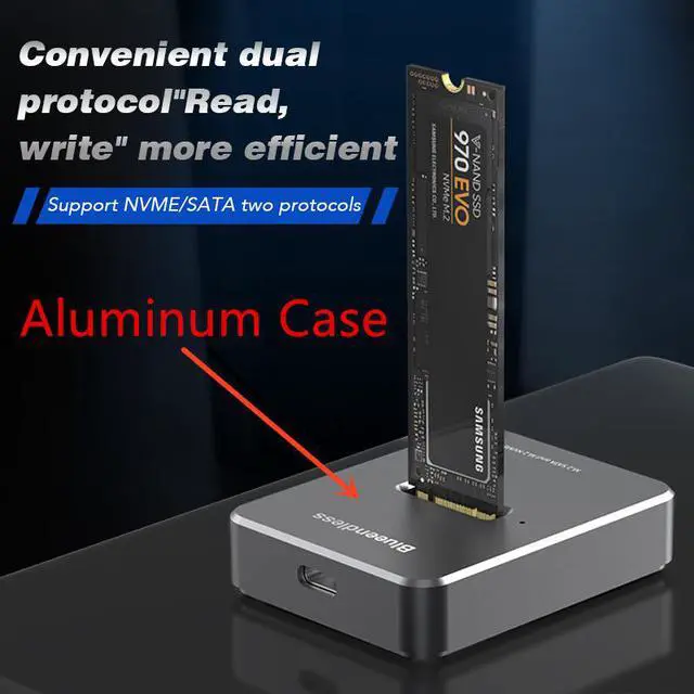This SSD docking station compatible with dual protocal, not only support M.2 SSD but also support M.2 NVme SSD.
