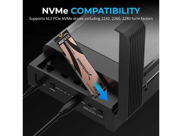 SABRENT USB Type C Lay Flat Docking Station for M.2 PCIe NVMe + SATA 2.5'"/3.5" SSD & HDD with Offline Clone Function [DS-UFNC]