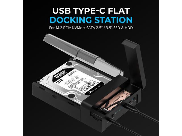 - Dock and Walk: The USB Type-C Flat Docking Station (DS-UFNC) supports M.2 PCIe NVMe SSDs and 2.5/3.5 SATA SSDs and HDDs simultaneously with tool-free installation. Transfer data over USB or clone offline with one or two drives. Built for ease and reliability.