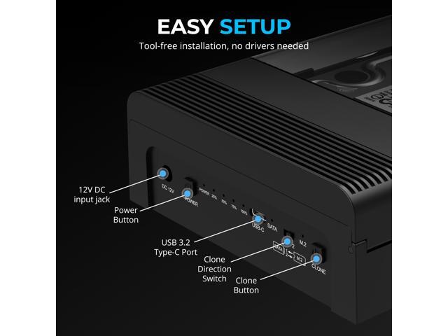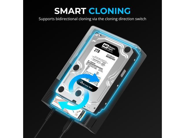 - Transfer or Clone: Can operate in either single- or dual-drive mode for data transfer. Supports convenient offline cloning between two drives. A power adapter is included to supply enough power for 3.5 HDDs and high-power SSDs.