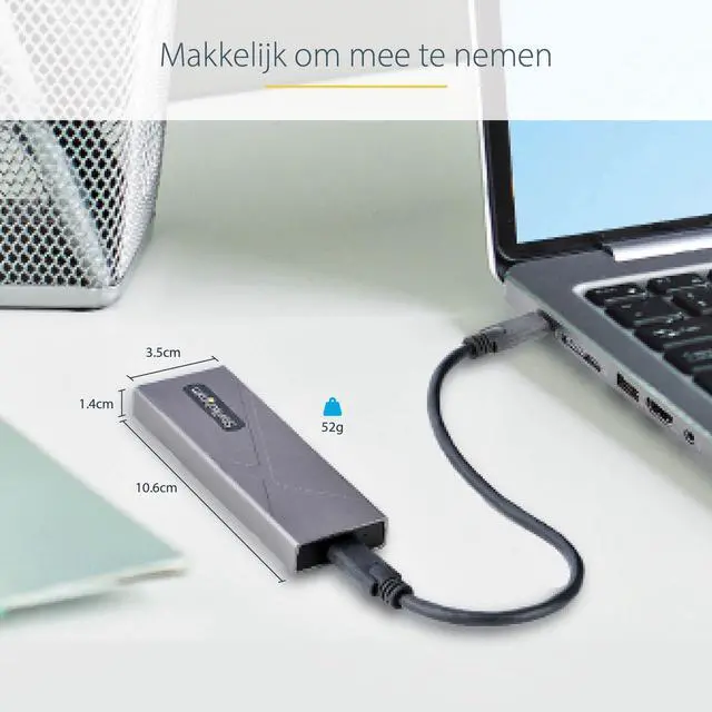 This slim, pocket-sized enclosure for PCIe NVMe or SATA based M.2 drives is specially designed for mobility, with a small form-factor design that fits easily into your laptop bag. Its lightweight, yet durable aluminum housing helps to ensure your drive wont be damaged while youre on the move.