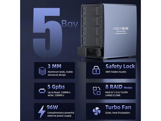 Efficient Power Supply: Equipped with a 96W large power supply, this device ensures stable and reliable performance for your storage solutions.
