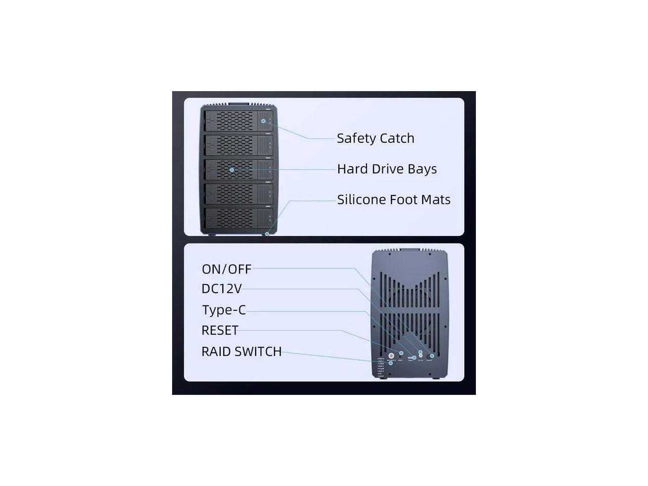 Advanced RAID Array Modes: With 8 RAID array modes, this enclosure provides enhanced data protection and storage flexibility.