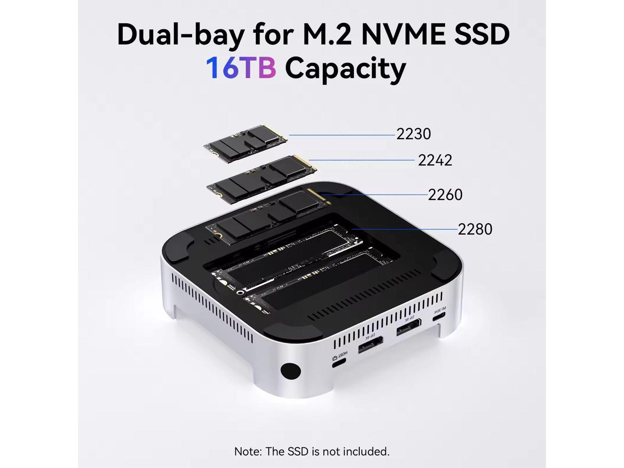 - Dual-Bay: Supports M.2 NVME SSDs, offering storage expansion as your needs grow.