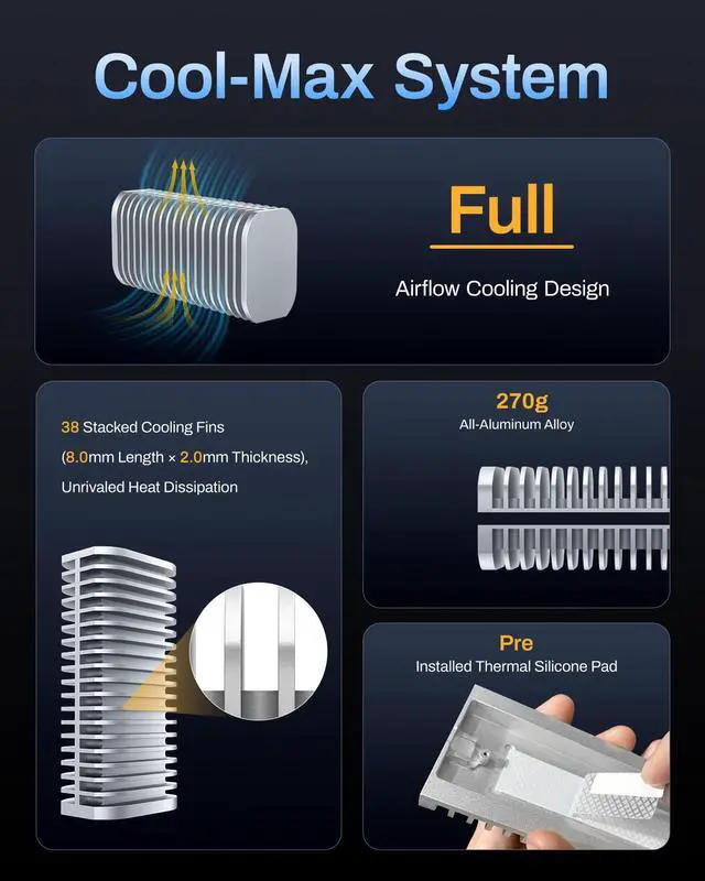 | Reading Speed (max.) | 7061MB/s (1 NVMe SSD, Single) | 3853MB/s (1 NVMe SSD, Single) | 3257MB/s (4 SSDs, Soft-RAID0) | 980MB/s (1 NVMe SSD, Single) |