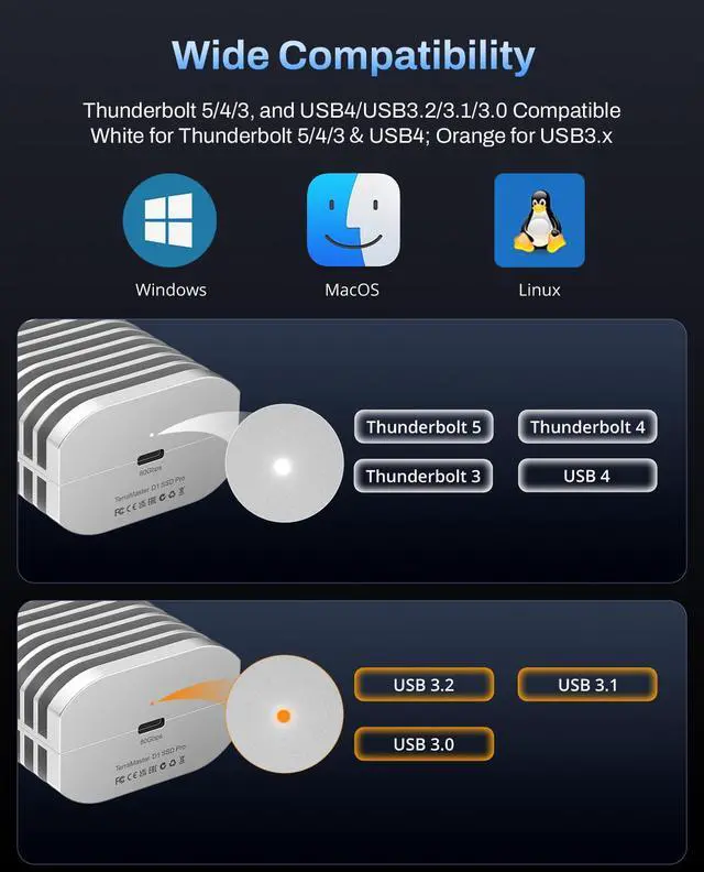 | Interface | 80Gpbs USB Type C | 40Gpbs USB Type C | 40Gpbs USB Type C | 10Gpbs USB Type C |