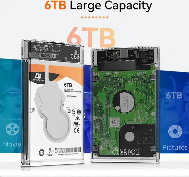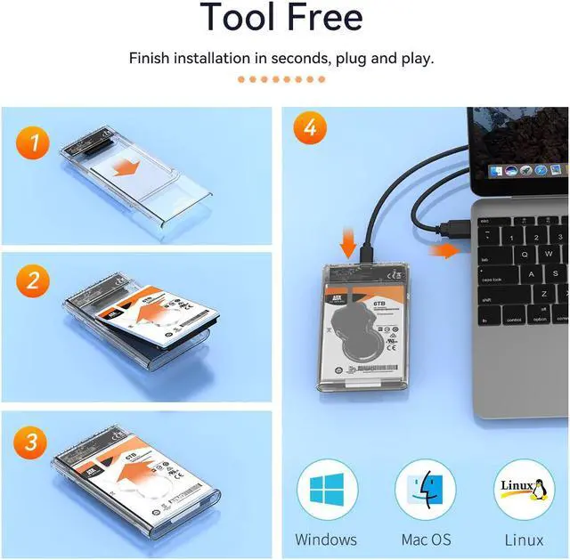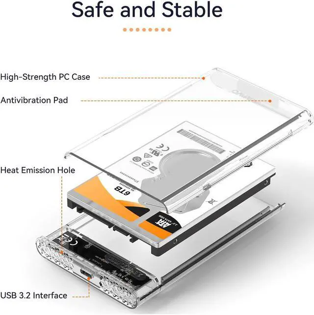This hard drive enclosure is made of transparent crystal PC material, can see the hard drive without opening the case.