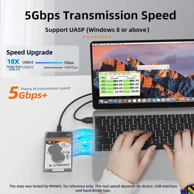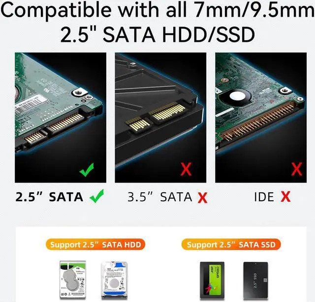 MAIWO K2510 2.5 inch SATA external enclosure is suitable for 7mm-9.5mm, 2.5" SATA III/II/I SSD HDD, such as Seagate, Samsung, WD, Critical, Toshiba, etc. Windows 2000/Windows 98/XP/Vista/7/8/10, Linux, Mac OS 9.1/10.8.4, and above can quickly recognize this 2.5-inch hard drive enclosure. Widely used in PC, Laptop, Xbox, PS5/PS4/PS3, etc.
