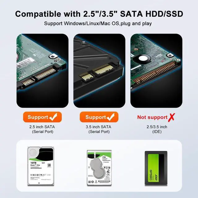 The SATA hard drive case is compatible with various computer / operation system such aus Windows/Linux/Mac OS for versatile use.