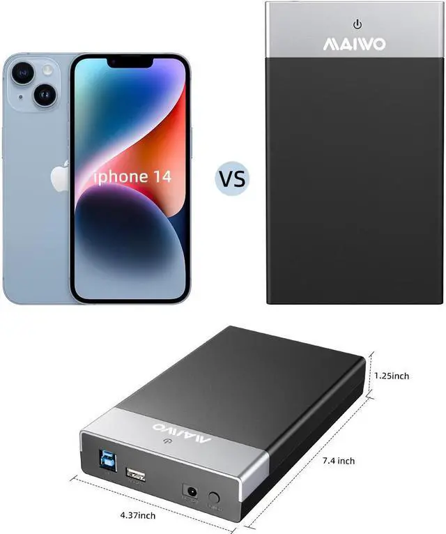 The MAIWO Hard Drive Enclosure is a high-quality storage solution for your 2.5 / 3.5 inch SATA hard drives. With its tool-free installation design, you can easily set up your hard drive without the need for any additional tools. The built-in USB hub allows you to connect multiple devices simultaneously, providing convenient connectivity options. Made with durable and reliable materials, this hard drive enclosure ensures long-lasting performance. Whether you're a computer hardware enthusiast or simply need extra storage space, the MAIWO Hard Drive Enclosure is the perfect choice for you.
