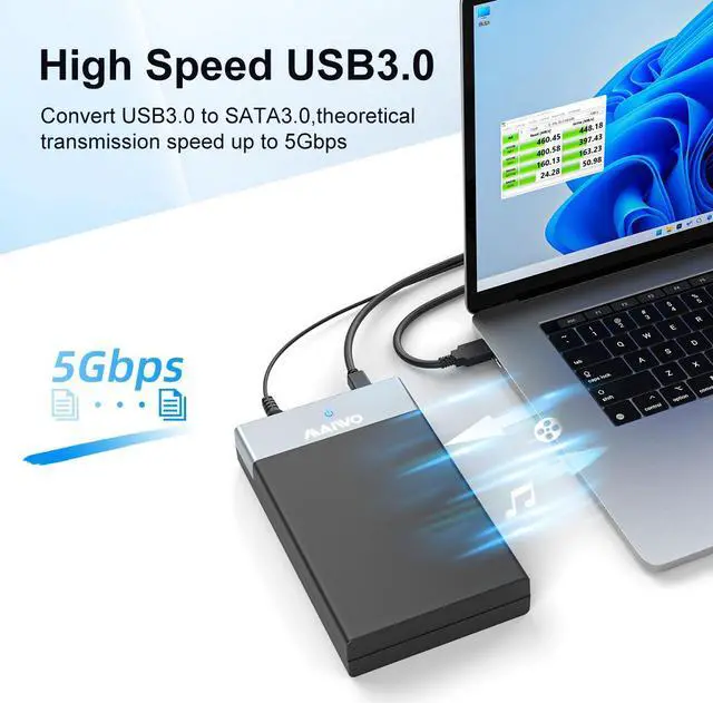 USB3.0 to SATA HDD/SSD enclosure adapter is designed with high grade and high performance chipset, more stable data tranfer.