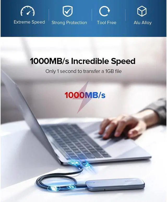 5. All-aluminum light-weight shell, fast heat dissipation, protect the hard disk.