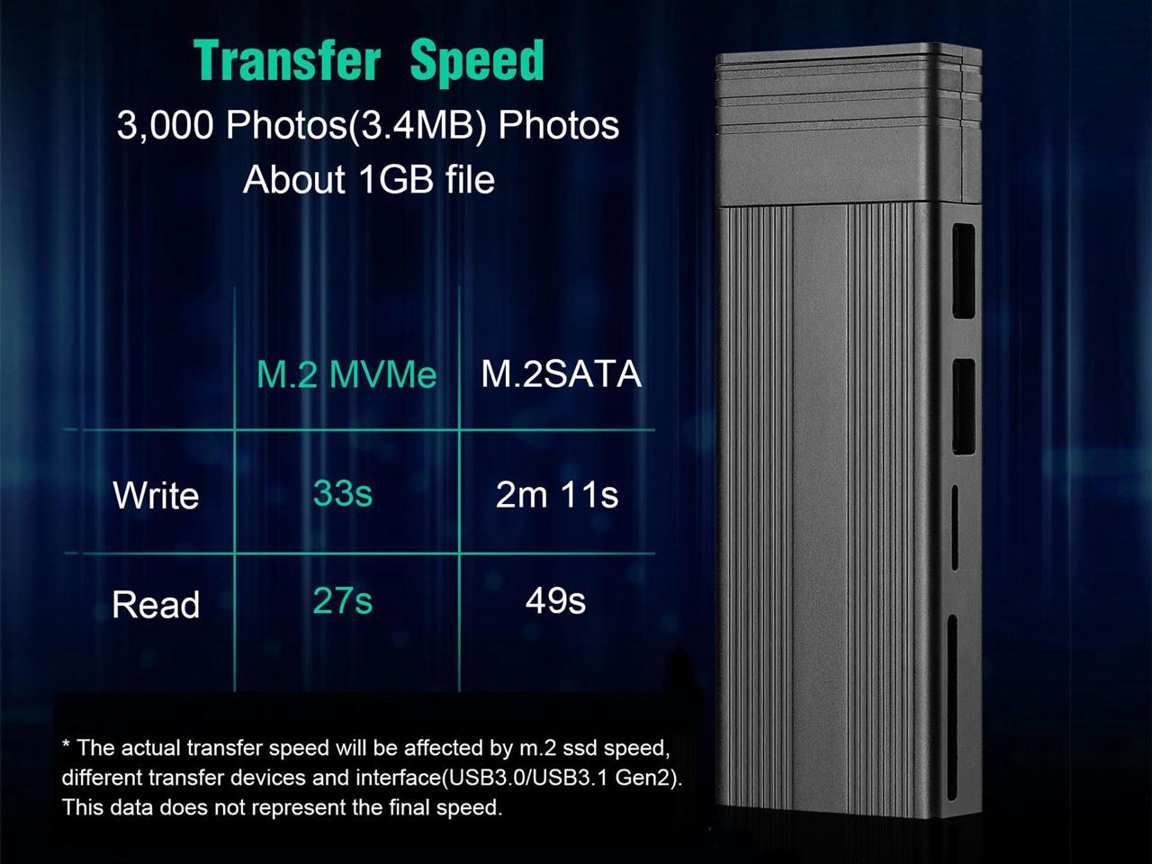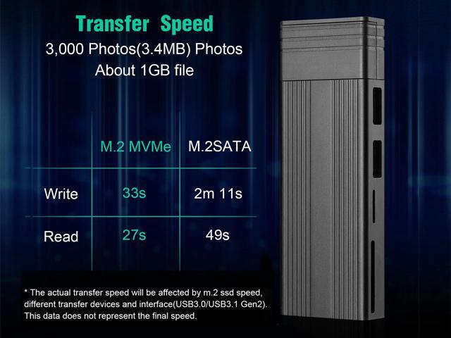 USB3.1 Gen2 10Gbps Speed: M2 ssd adapter up to 10Gbps. High-speed M.2 NVME to USB 3.1 Gen2, perfect solution for data transfer and backup, the actual transfer speed depends on the speed of the SSD, the type of USB port, computer performance and NVMe media use.