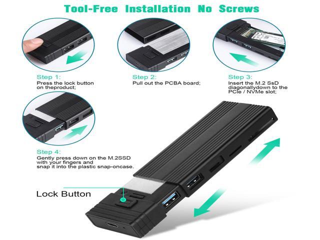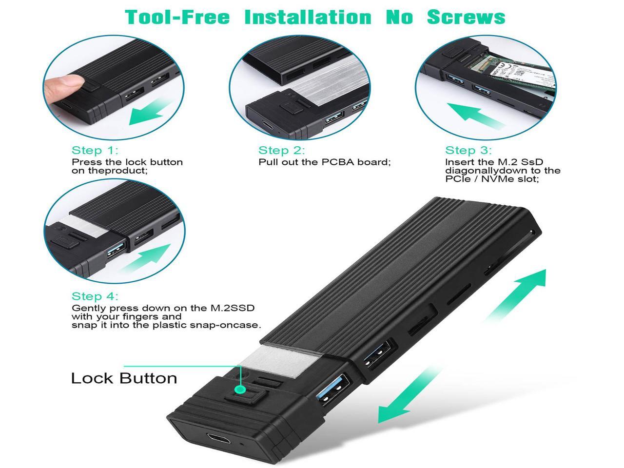 Tool Free Installation: The 5-in-1 SSD Enclosure features an all-aluminum alloy body with a sliding SSD tray for tool-free installation, ensuring faster and more convenient setup.