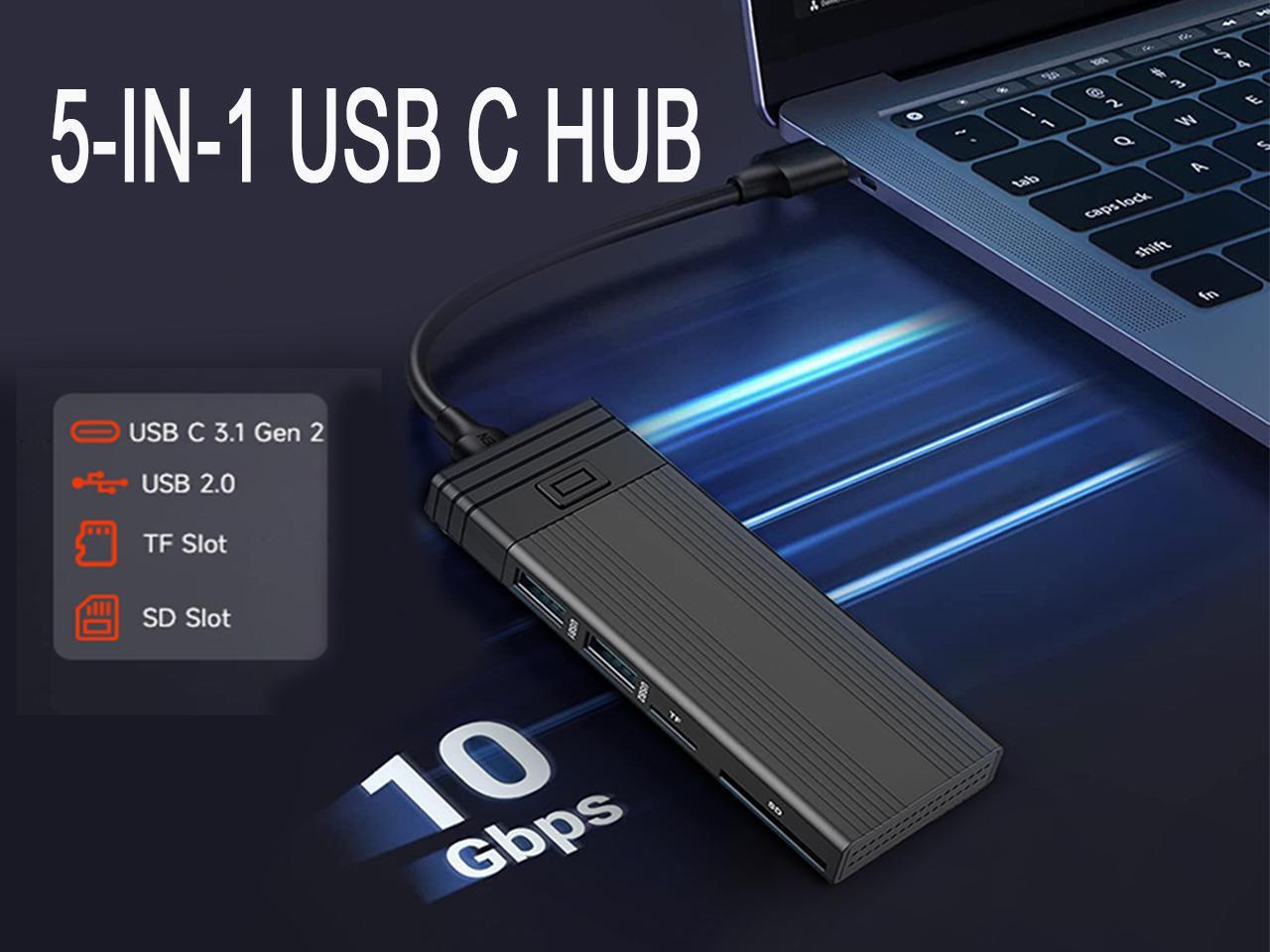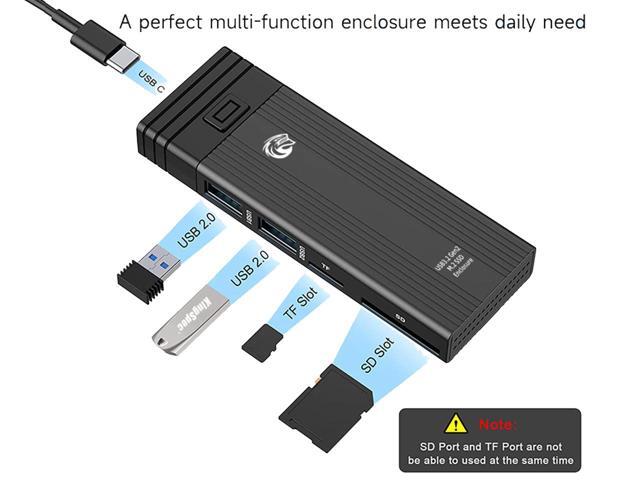 KingSpec 5 in 1 SSD Enclosure NVMe NGFF M.2 SSD Case USB C HUB Type C 3.1 Adapter Dock USB HUB for Desktop Laptop USB C Splitter 2242/2260/2280 (with C to A Cable and C to C Cable)