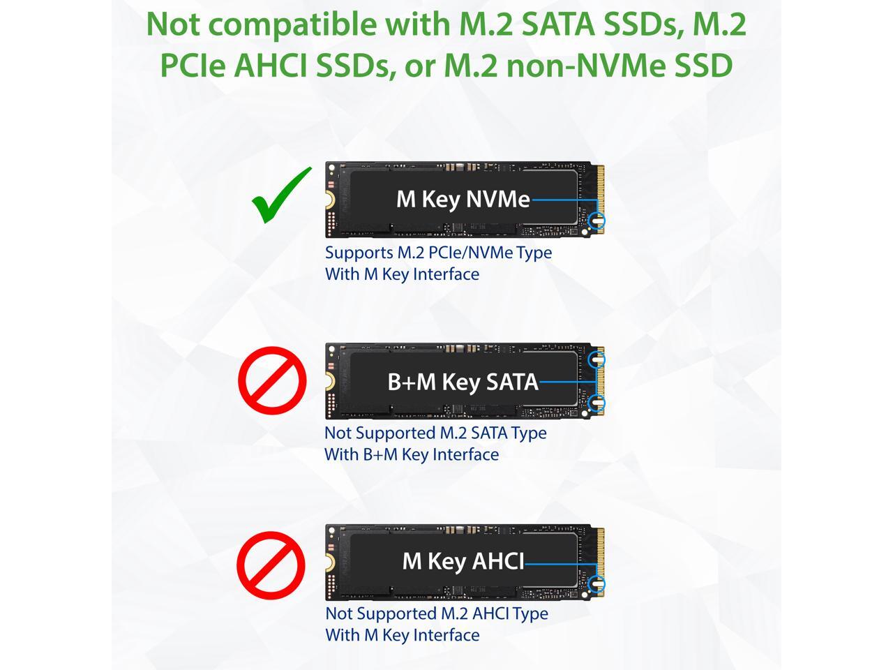 - Adopt ASM2364 master chip,Easy Setup, Hot-swappable, Plug and Play, No Driver requiredWith LED indicator, easy to control SSD working status. Not compatible with M.2 SATA SSDs, M.2 PCIe AHCI SSDs, or other M.2 non-NVMe devices