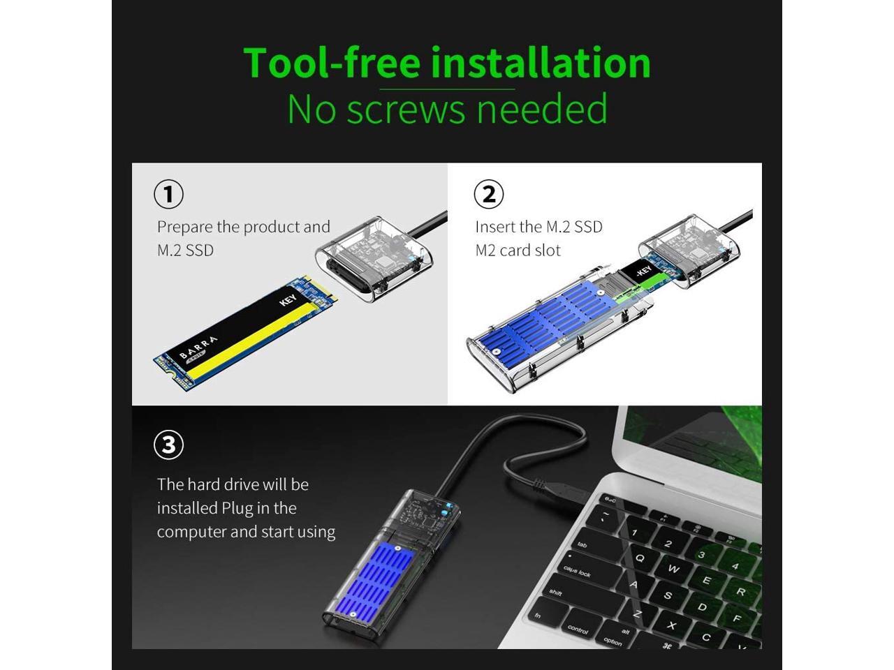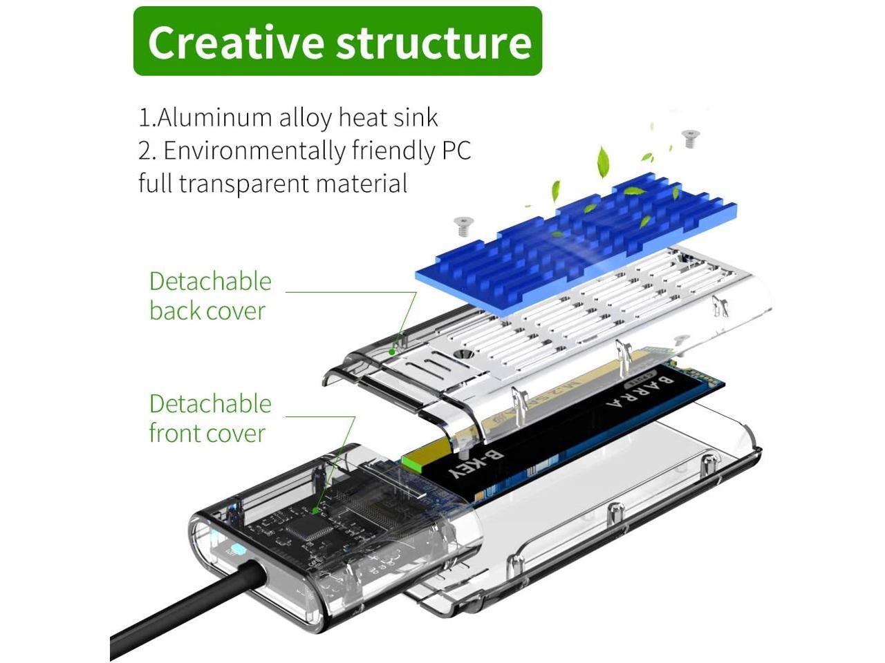 Transparent M.2 SSD Enclosure High Speed USB3.0 Gen1 5Gb/S M.2 NGFF SATA External Hard Drive Case for PC