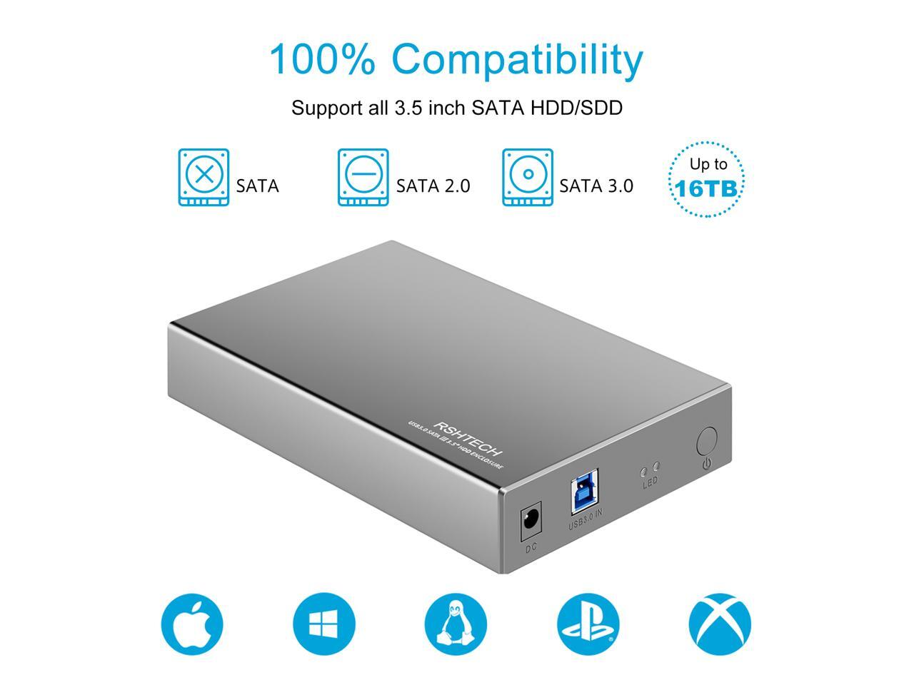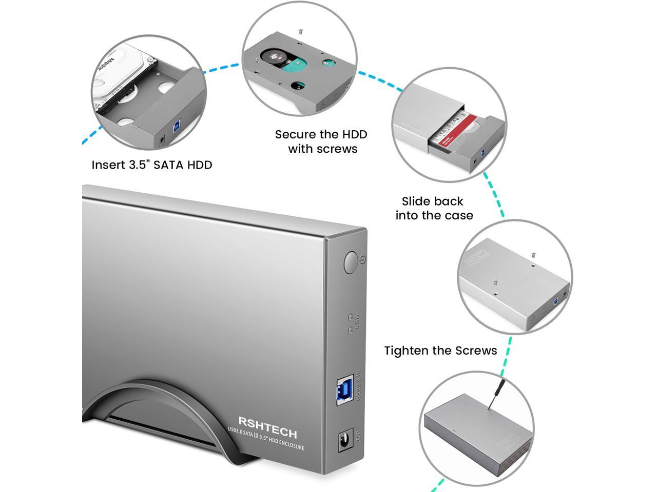 USB C Aluminum Hard Drive Enclosure RSHTECH Type C to SATA External Hard Drive Dock Case for 3.5inch HDD SSD, Support UASP & 16TB Drives (RSH-339C)