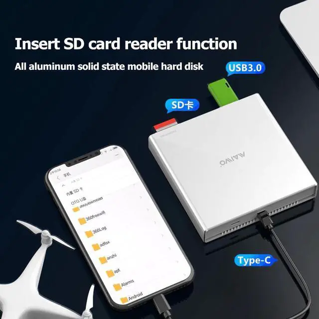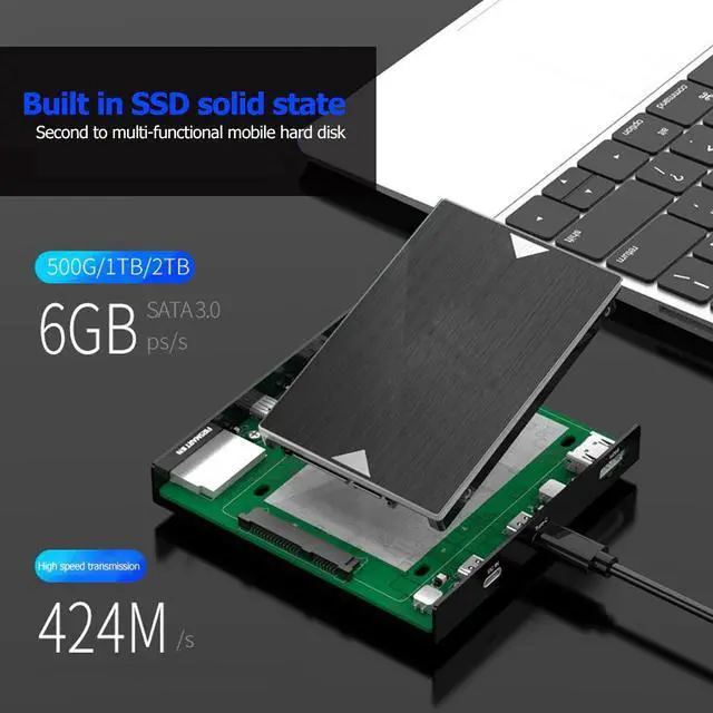 K2525 Aluminum Alloy Hard Drive Enclosure Memory Card Reader USB Type C to 2.5 inch SATA External SSD HDD Case
